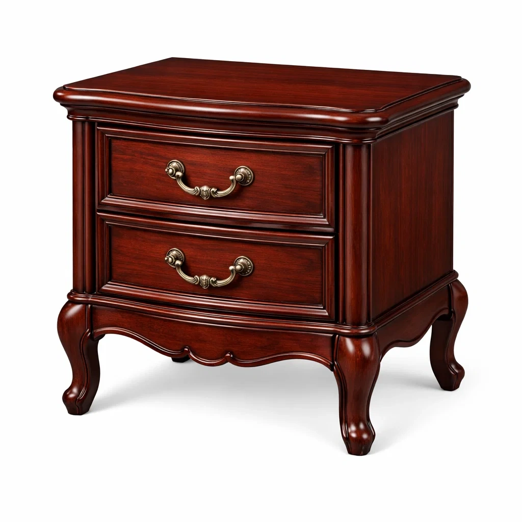 Nachttisch aus massivholz rotbraun mit 2 schubladen
