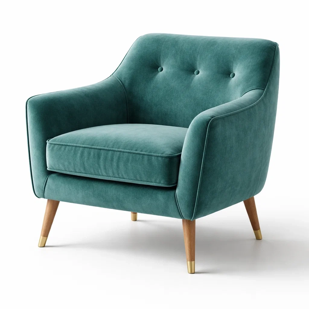 Sessel samt grün mit massivholzrahmen